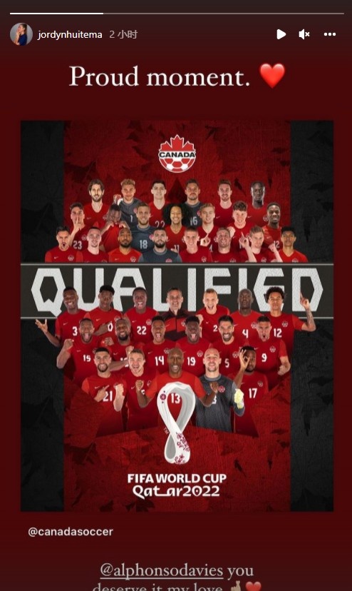 加拿大晋级世界杯,阿方索-戴维斯女友祝贺:你配得上,亲爱的